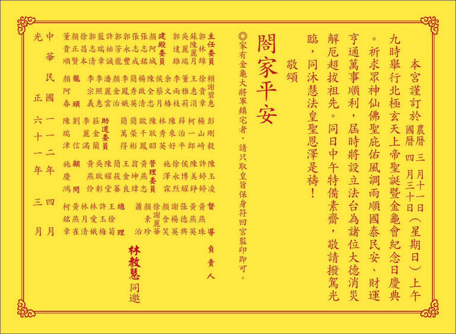 北極玄天上帝聖誕、金龜會紀念日 (4月14日農曆3月10日)《 請柬 》