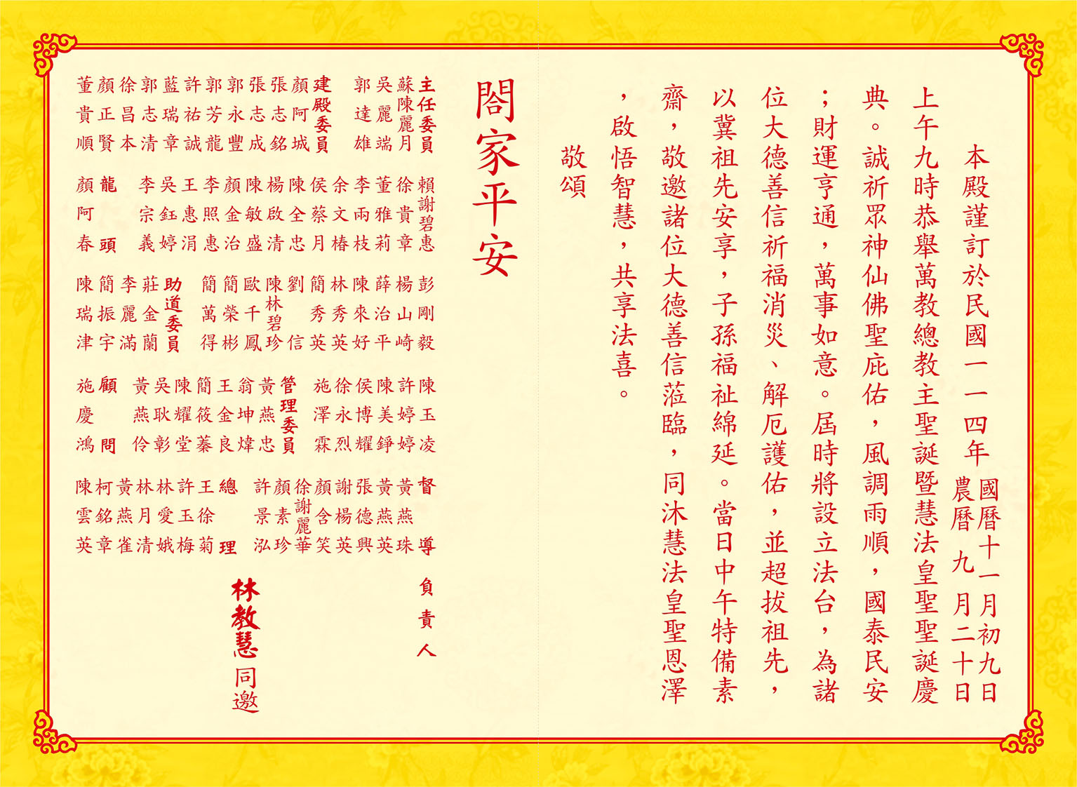 萬教總教主暨慧法皇聖聖誕(11月5日農曆9月22日)《 請柬 》 |