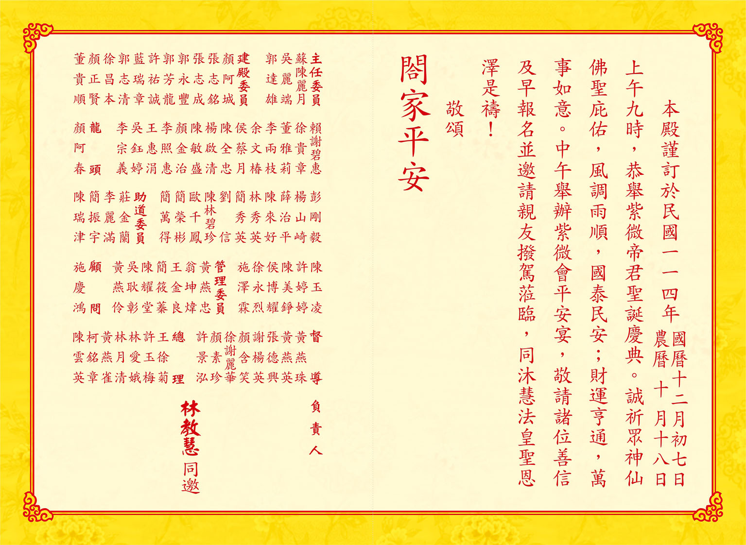 紫微帝君聖誕慶典(12月7日農曆10月18日)《 請柬 》 |